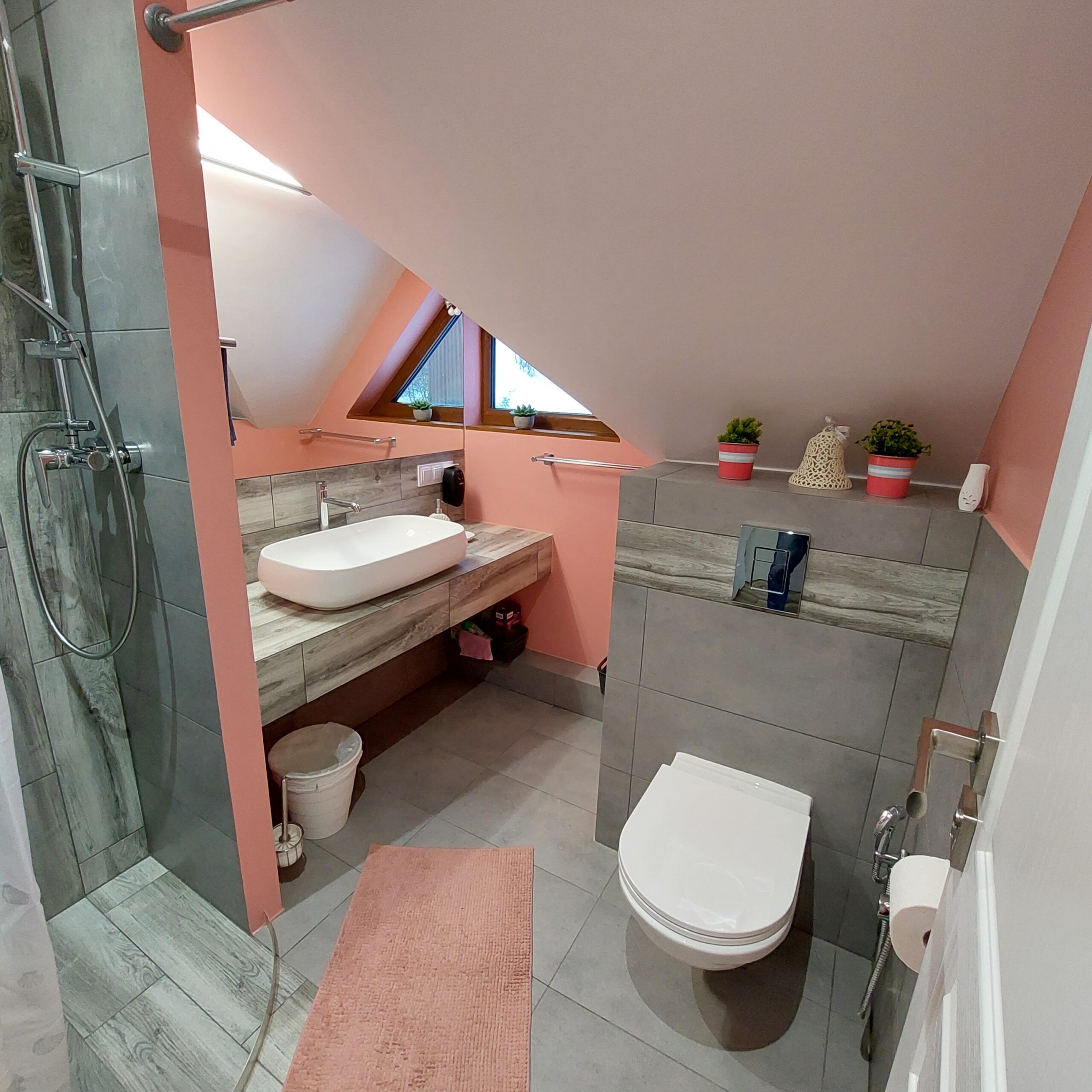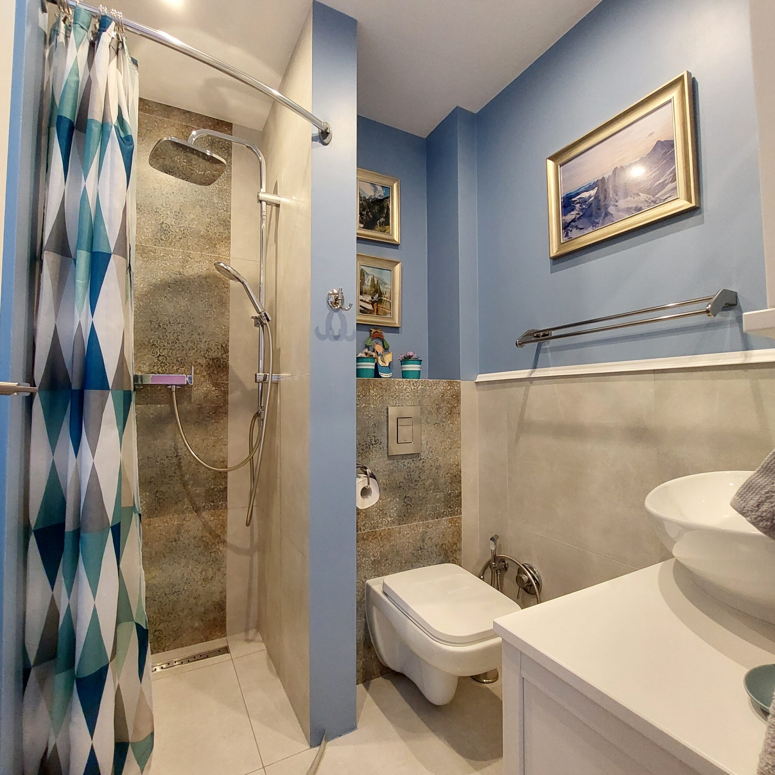 - 1 sypialnia z łazienką z prysznicem i toaletą z funkją bidetu, a także przedpokój z wejściem do osobnej WC,